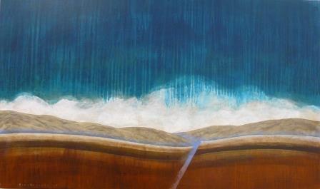 This exhibition is dominated by two of Hirabayashi's ongoing series, High Country Lakes, and her geological series. These usually show either volcanic or faultline structures below. The mountains of Fiordland and the Otago coastline inspire Hirabayashi's love of place and their geological makeup. Light washes the high peaks and Hirabayashi's interest in geology produces the mountain building process. The structure of the mountain and valley is revealed with the lit surface or by the carved substance of Hirabayashi’s imagined world.