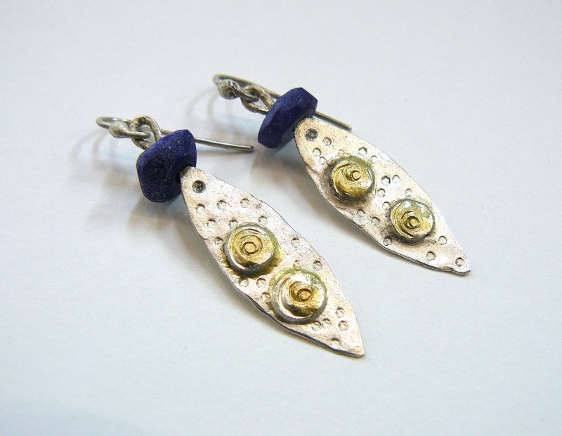 Sterling silver, 18ct gold and lapis Leaf Earrings.