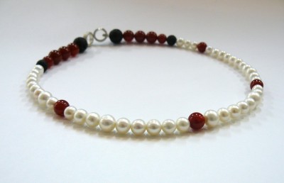 Pearls, Black Lava, Carnelian and Sterling silver.