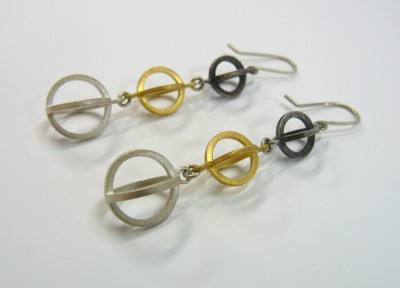Trinity earrings, sterling silver and 24ct gold-plating.