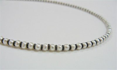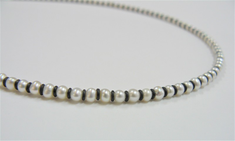 Oxidised sterling silver and white pearls.