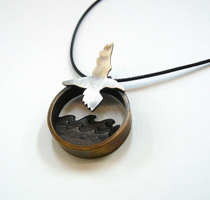 Bronze & silver 'Seabird' pendant.