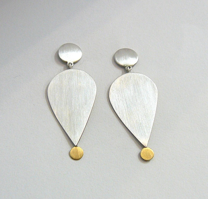 Fine & sterling silver ear-studs with 18ct gold disc.