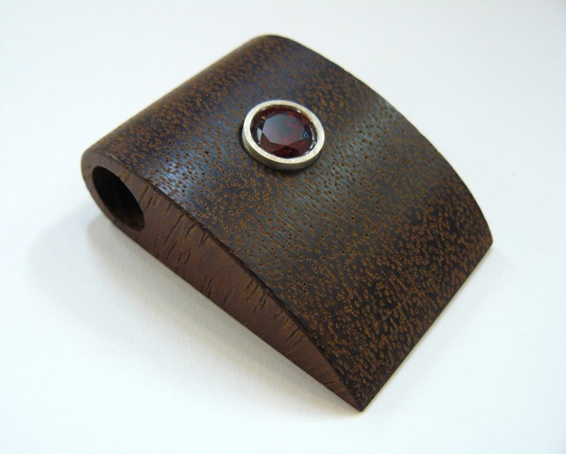 Jarrah, silver and red cubic zirconia.
