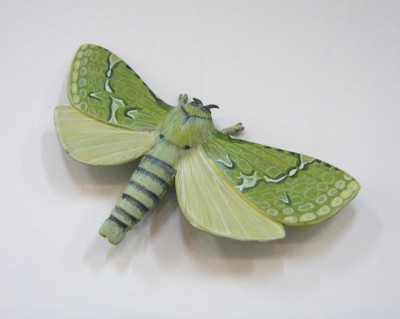 Puriri Moth Brooch, bronze and enamel.